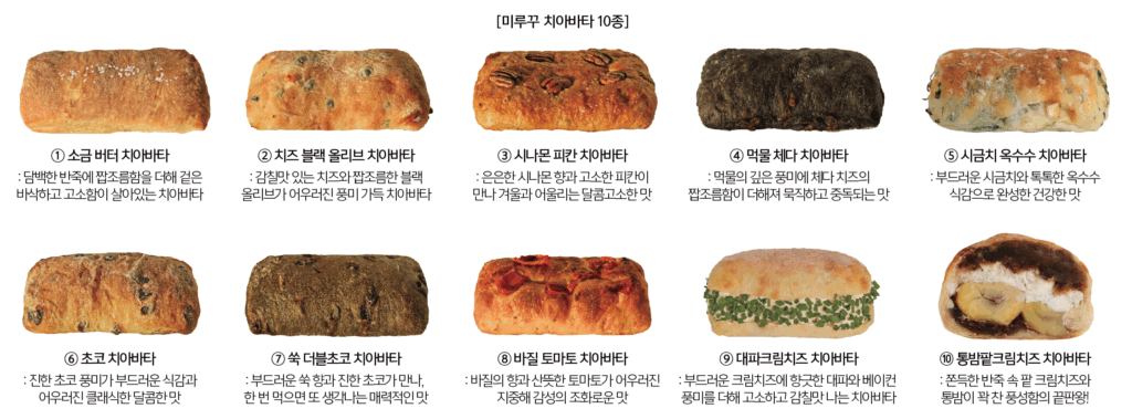 기본 반죽을 바탕으로 재료의 조화를 찾아 미루꾸만의 감각으로 완성한 10가지 플레이버를 준비했다.